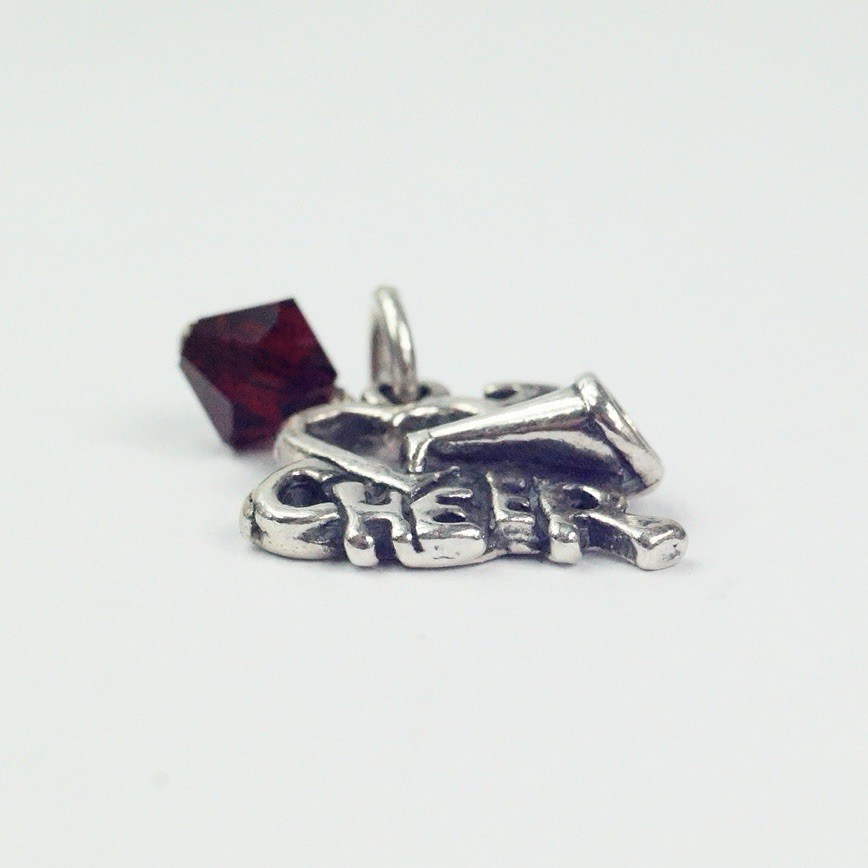 Sterling Silver Love To Cheer Red Crystal Cheerleading Charm