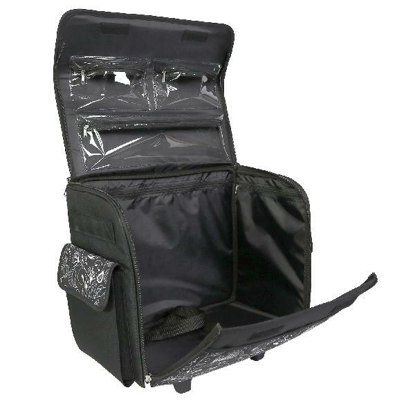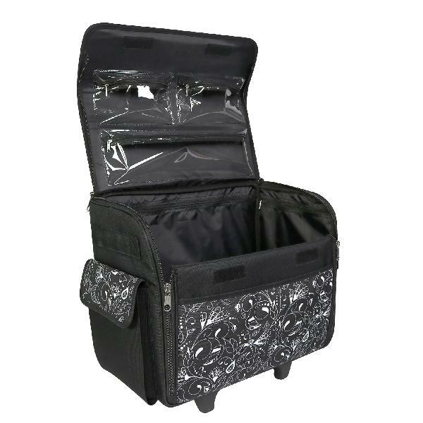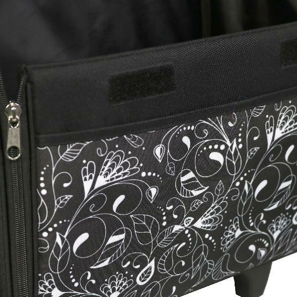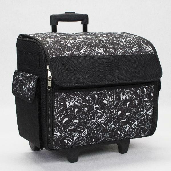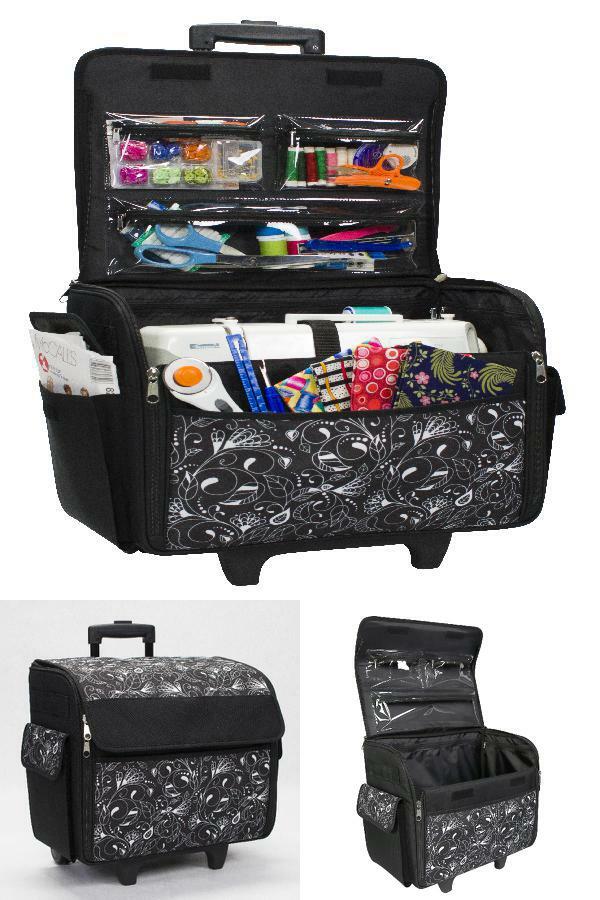 New Black Floral Rolling Tote Sewing Machine Wheeled Carrier Storage Bag Case