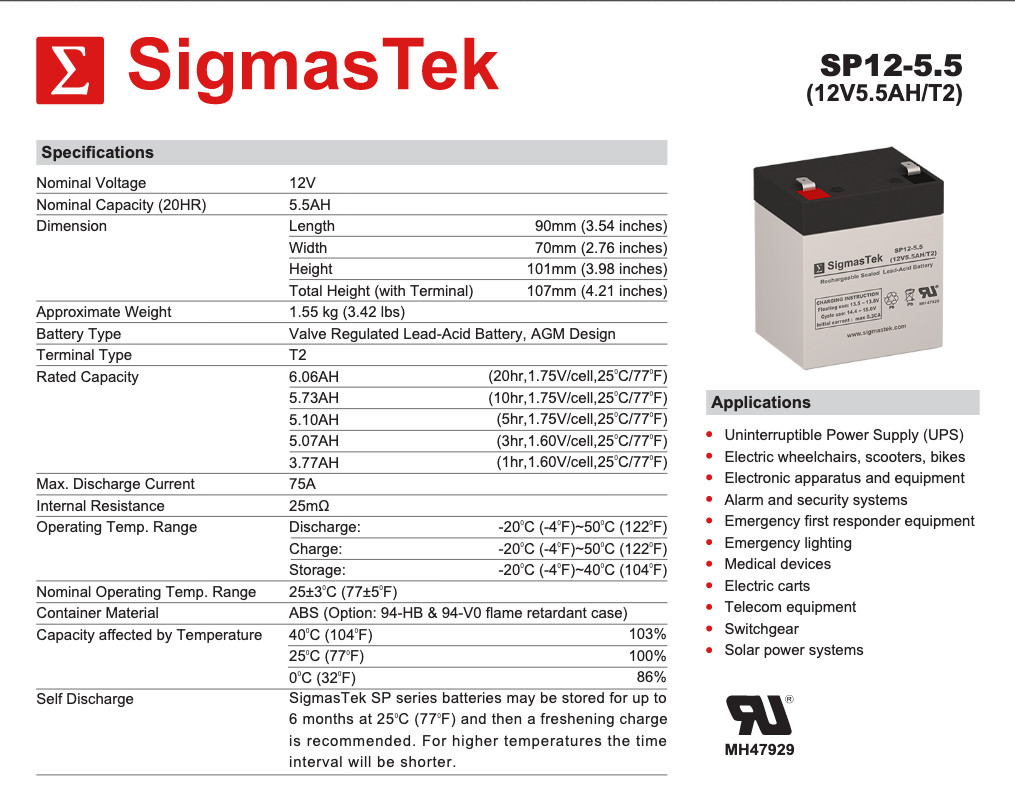 12V 5AmpH Battery Replacement for Mighty Max ML5-12 by SigmasTek