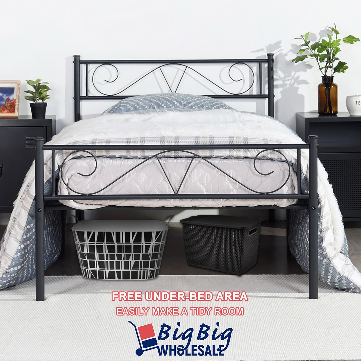 Twin Size Metal Bed Frame Black Mattress Foundation Steel Platform Headboard