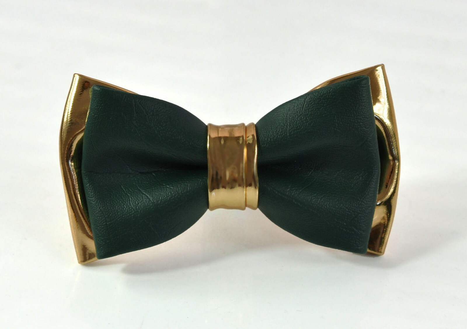 Men Dark Emerald Green Hunter Green Gold Faux Leather Bow tie Bowtie Wedding
