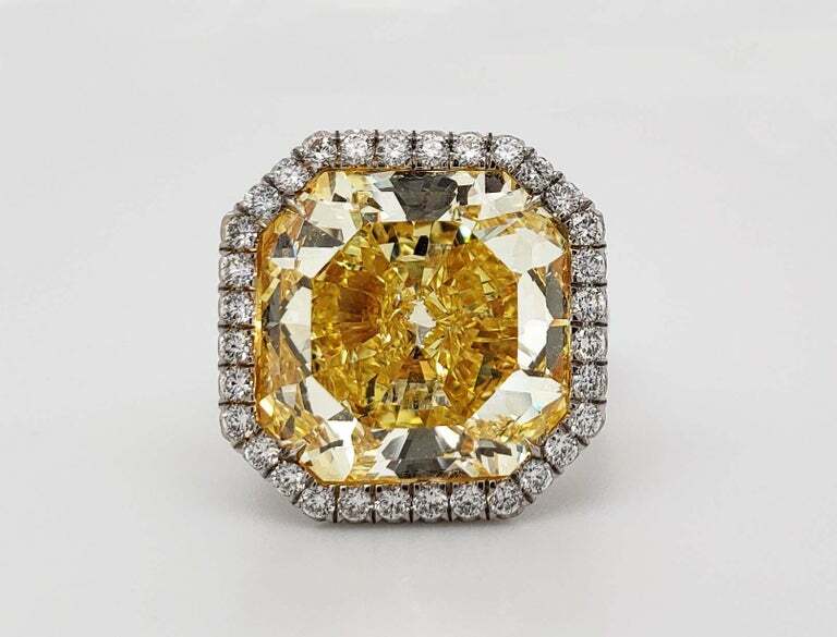 как выглядит 15.25CT Fancy Intense Yellow Citrine With Pure White CZ Internally Flawless Ring фото