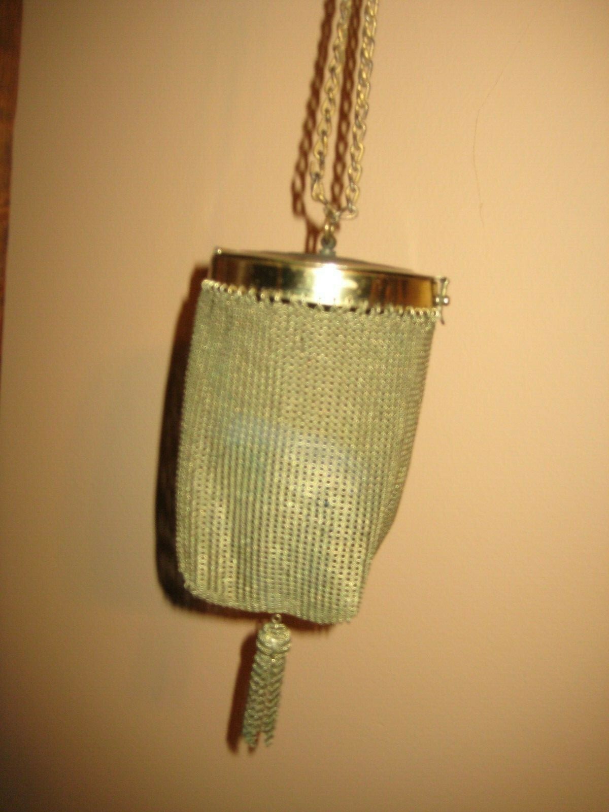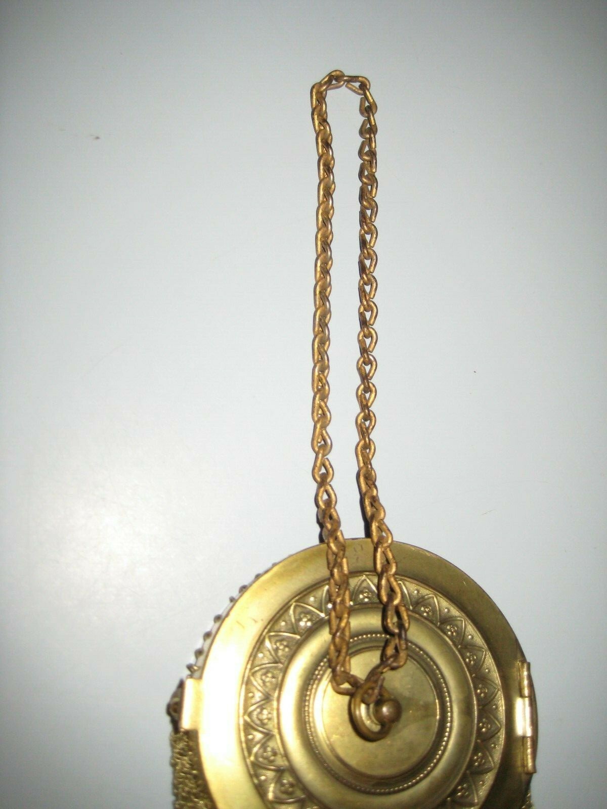 как выглядит VINTAGE ANTIQUE VICTORIAN METAL MESH, CIRCULAR COIN PURSE WITH CHAIN STRAP фото