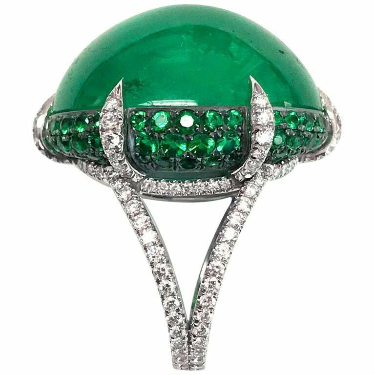 Shiny 44.40CT Colombian Green Emerald Simulated White CZ Beautiful Women Ring