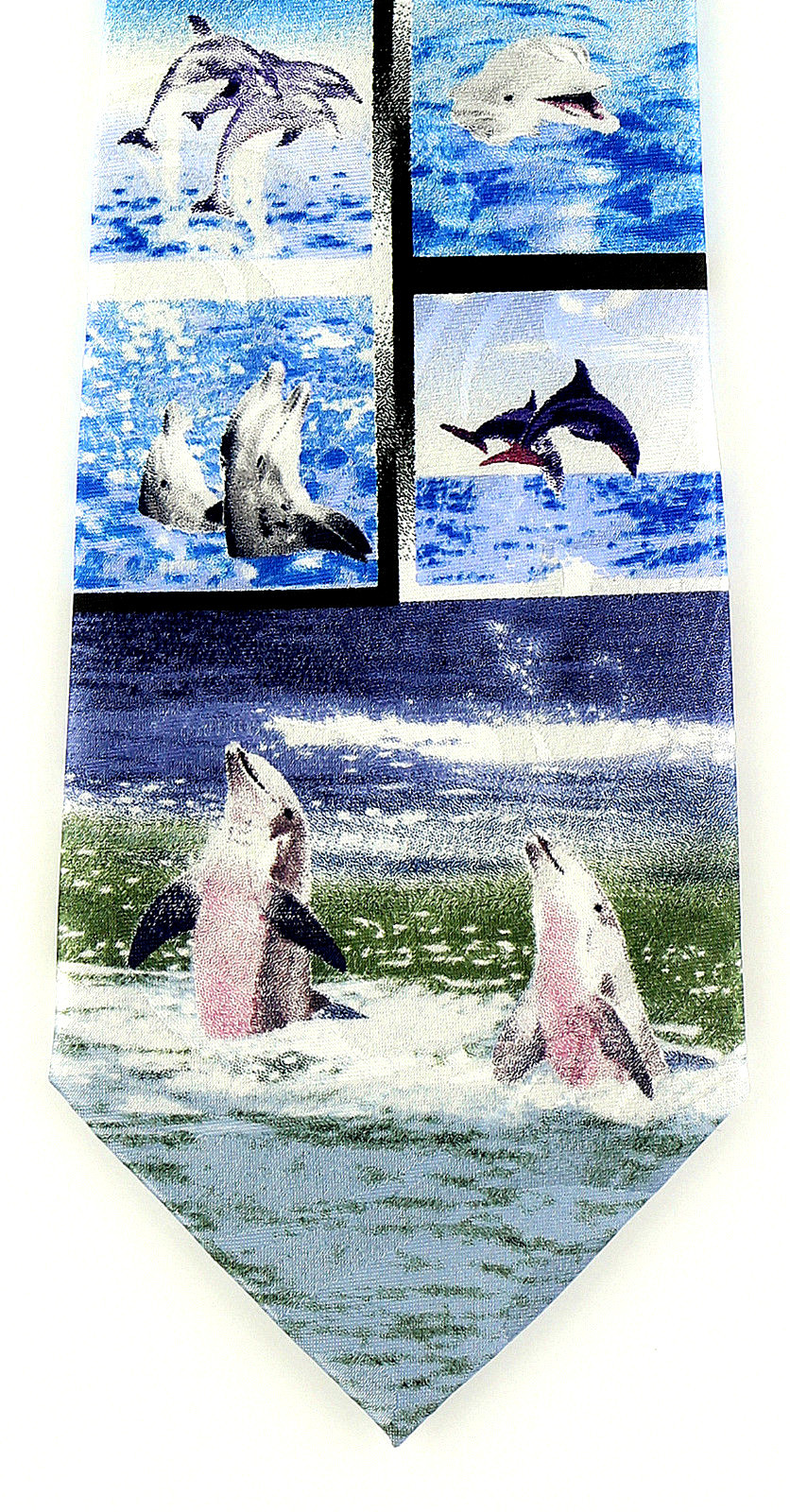 Dolphins Mens Necktie Ocean Animal Neck Tie Sea Mammal Blue Neck Tie