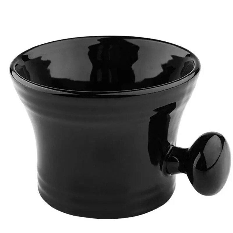 Gentleman's Ceramic Porcelain Shaving Soap Puck Lather Bowl Mug Handle Black