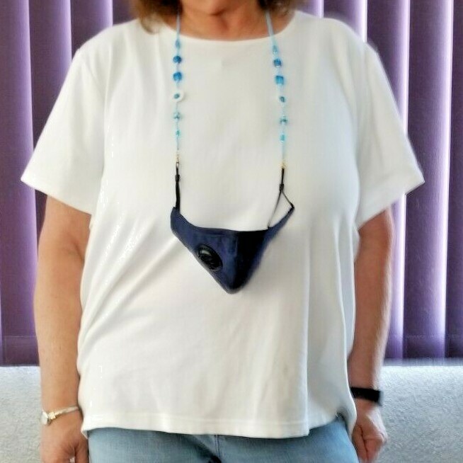 Handmade One Of A Kind Beaded Mask Holder Chain Lt Blue/White Art Glass