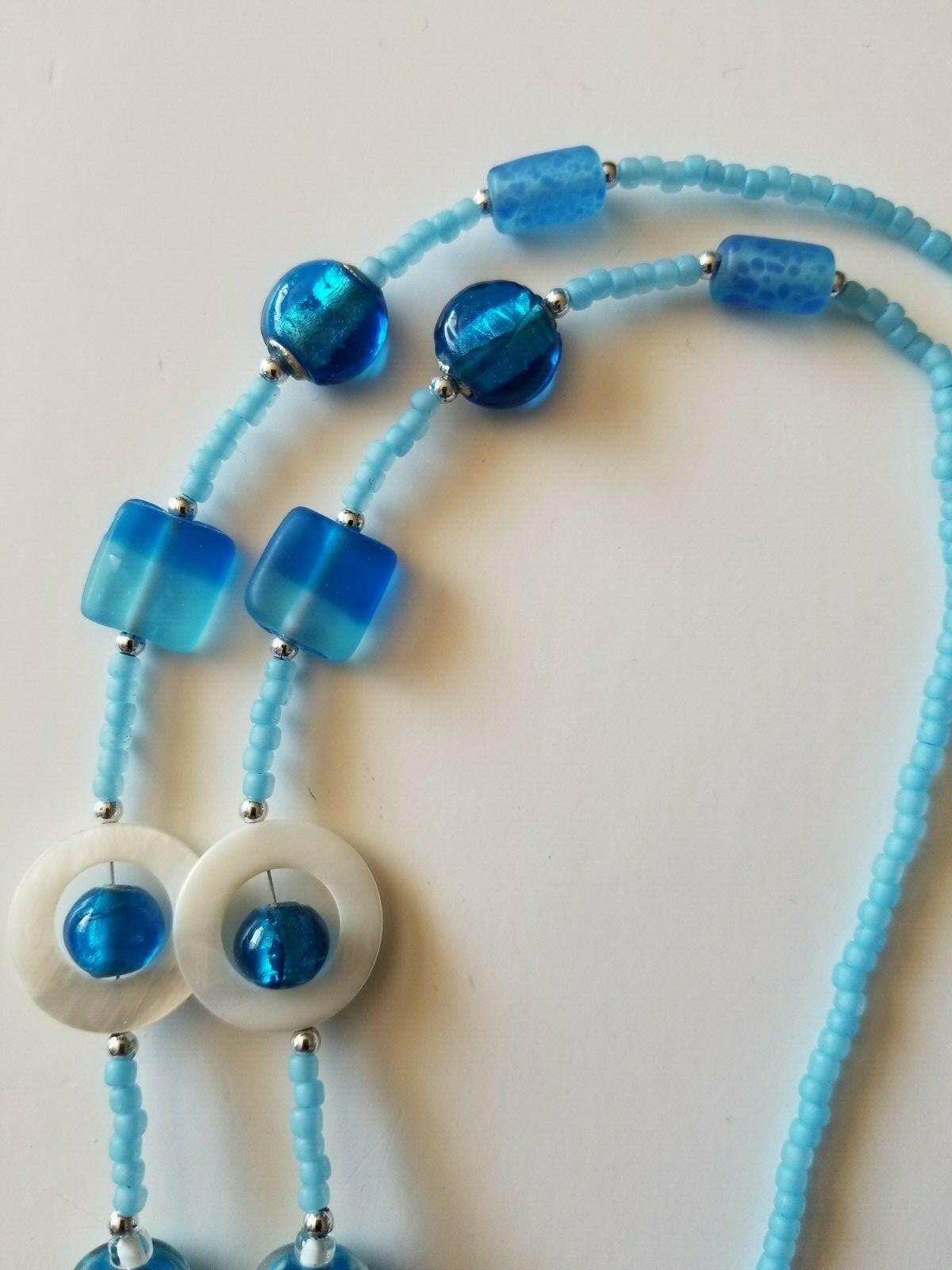 как выглядит Handmade One Of A Kind Beaded Mask Holder Chain Lt Blue/White Art Glass фото