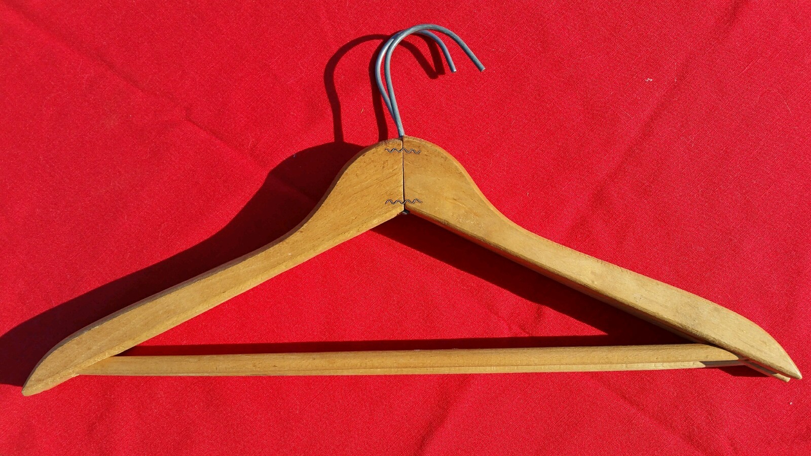 как выглядит 2 Vintage Wood SUIT Hangers DOME TOP MATCHED SIZE SHAPE H7B фото