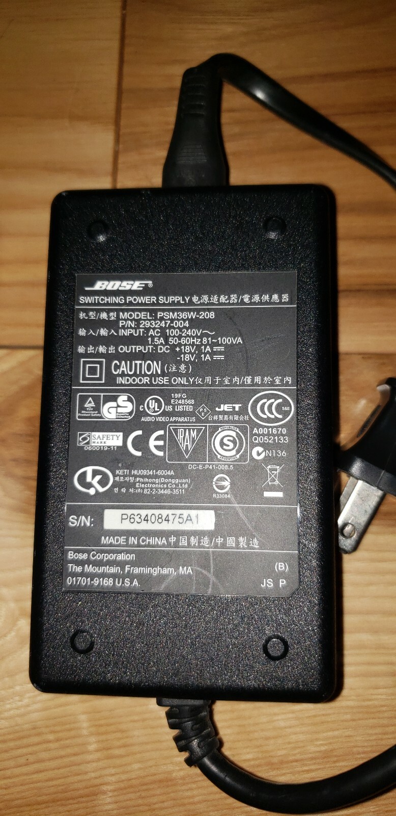 Lot of 2 Genuine Bose Power Supply Cords 2 PSM36W-208 FREE SHIPPING