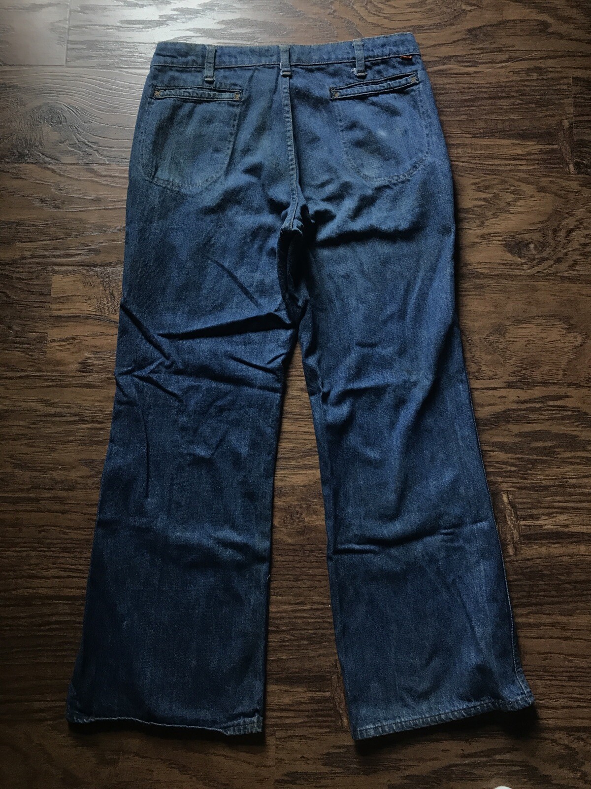как выглядит Vtg 70s Levis Retro Orange Tab Denim Mid Rise Flare Hippie Jeans фото