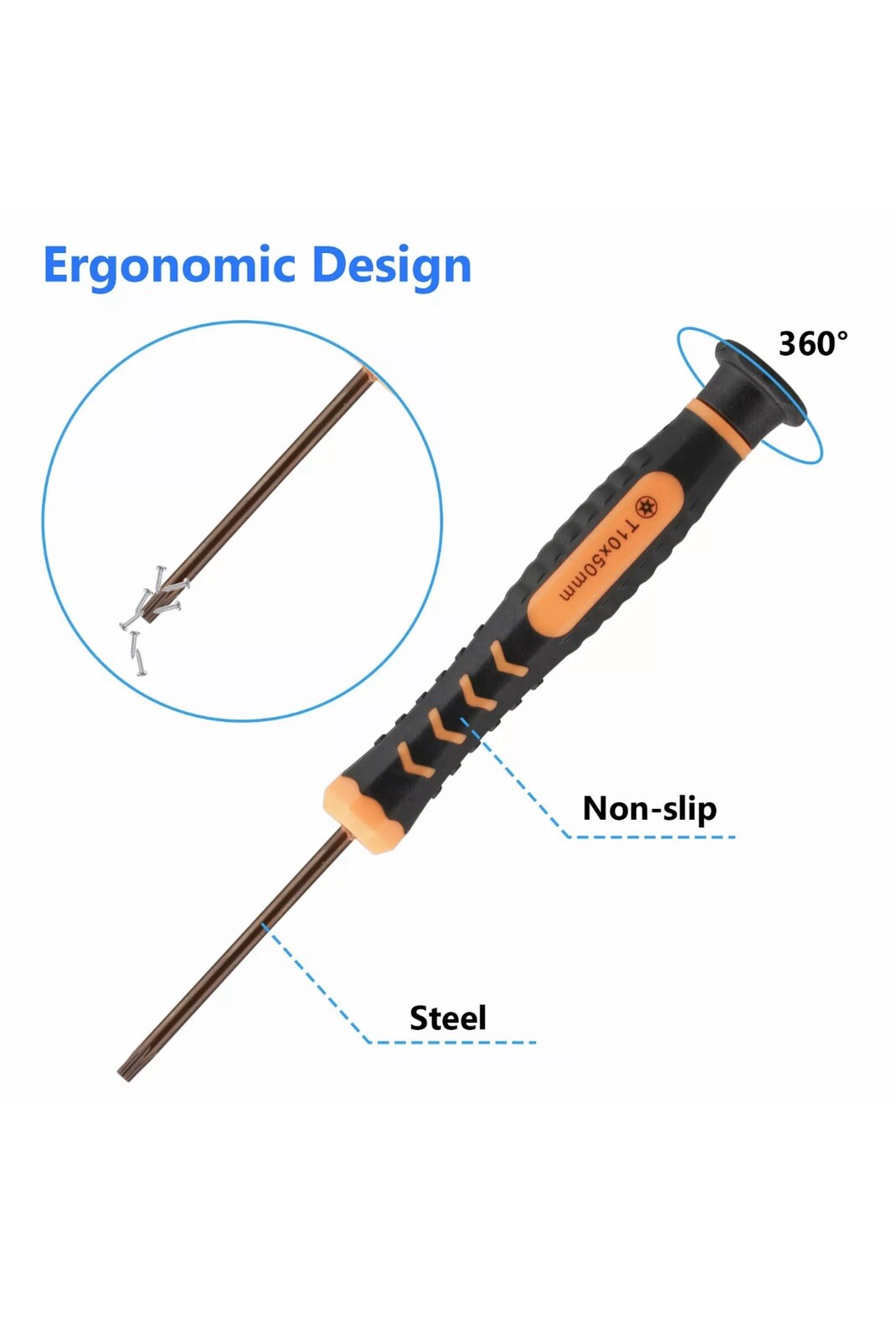 FEATURE 1: The screwdriver heads, made of premium S2 steel and hardness