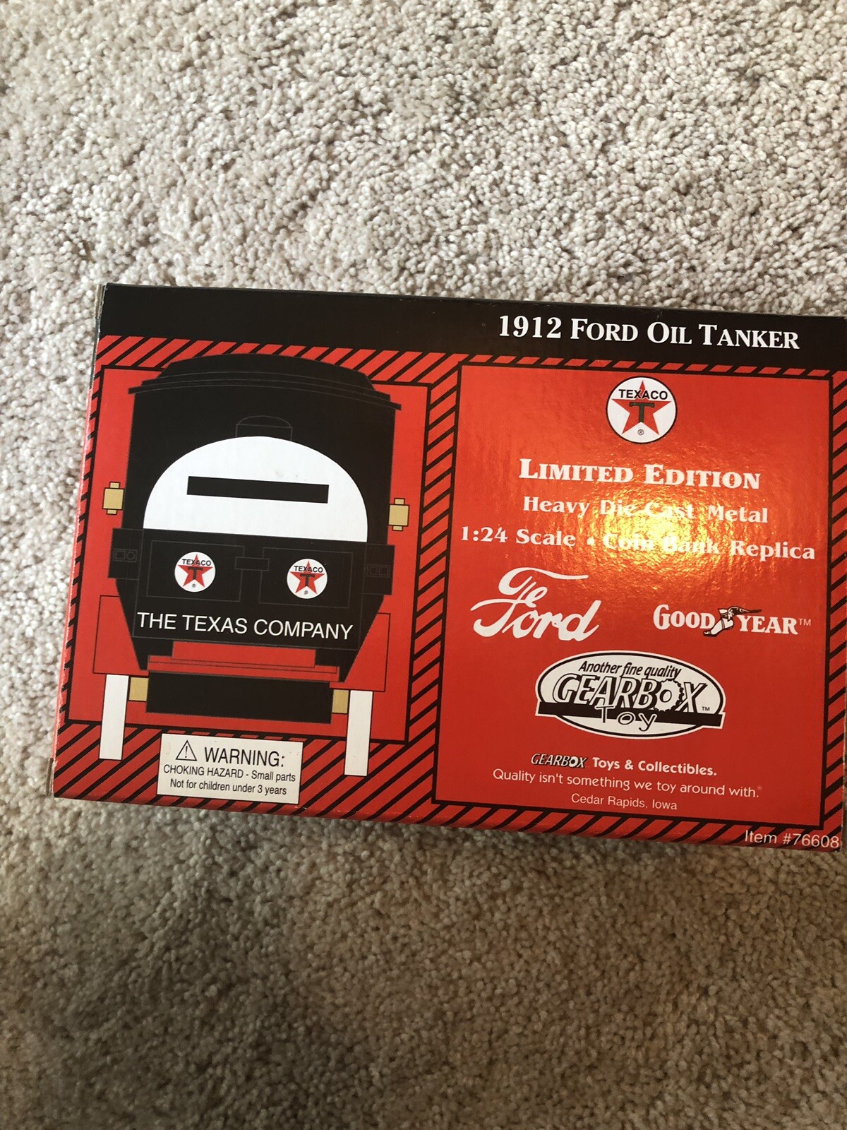 как выглядит GEARBOX--TEXACO OIL TANKER--1912 FORD --GOODYEAR COIN BANK фото
