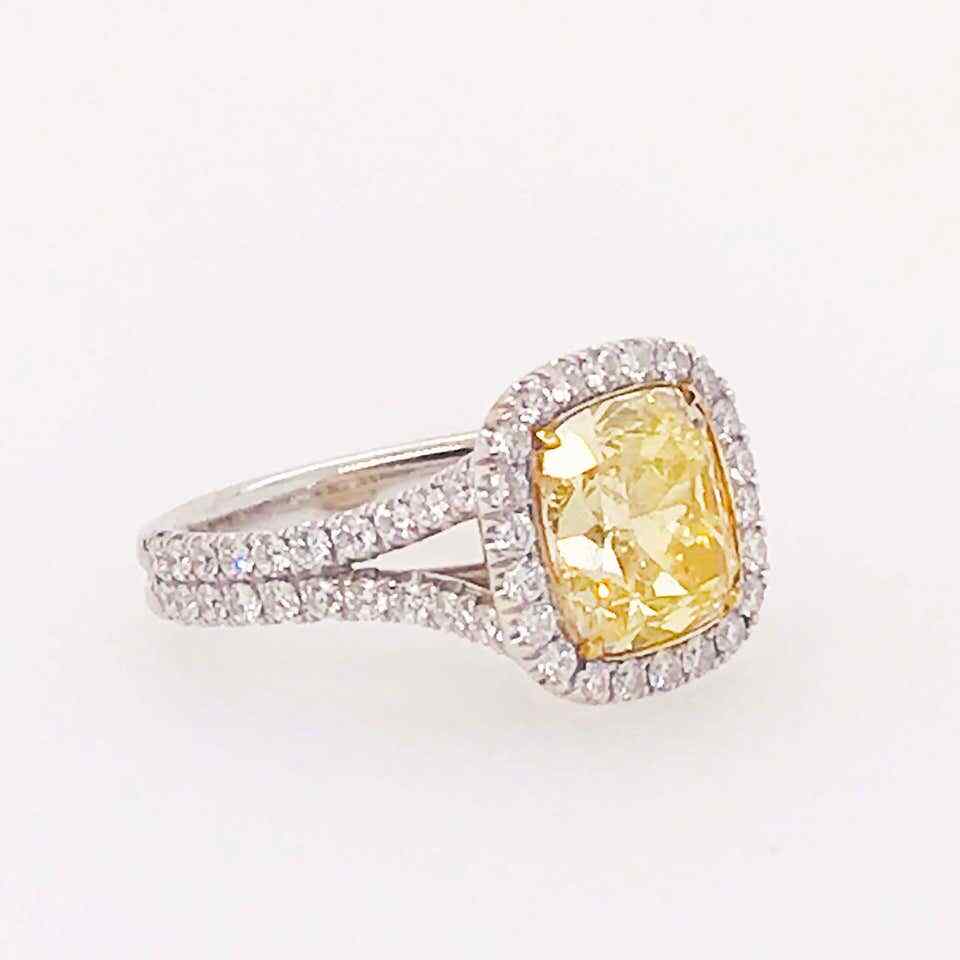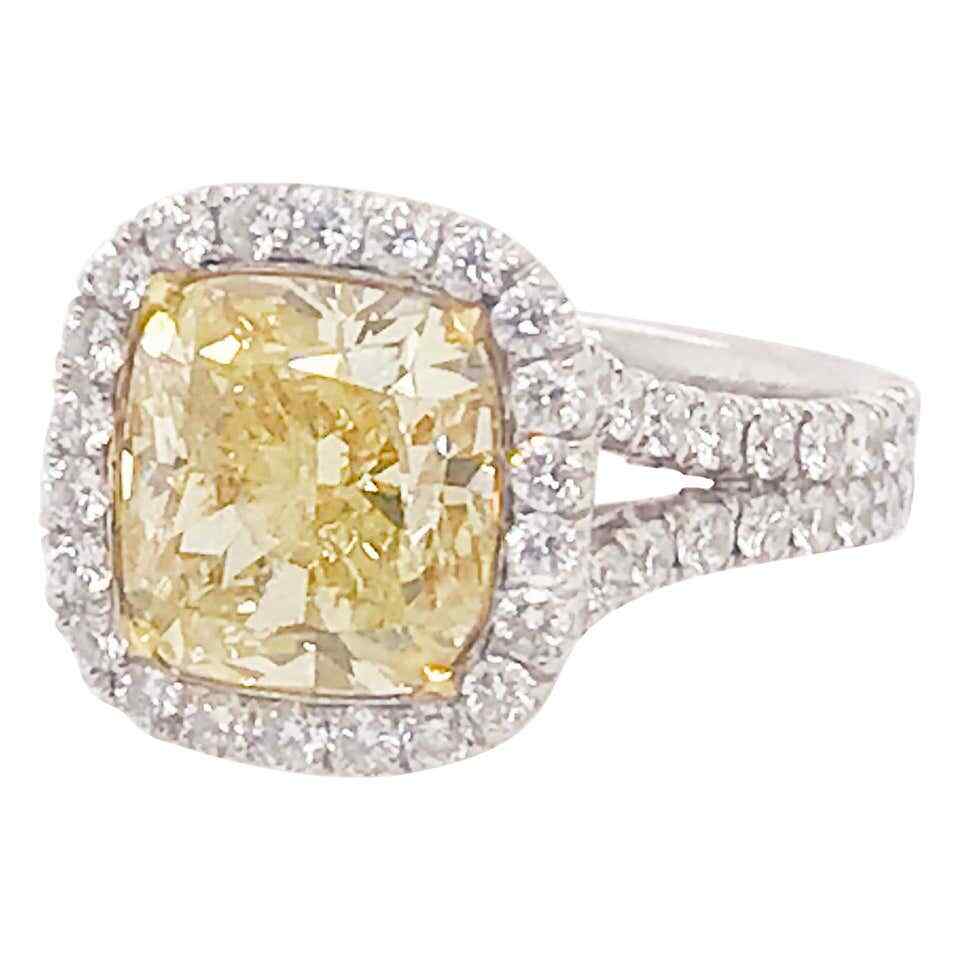 4.06CT Fancy Yellow Citrine Brilliant Cut Cubic Zirconia Halo Fashion Ring