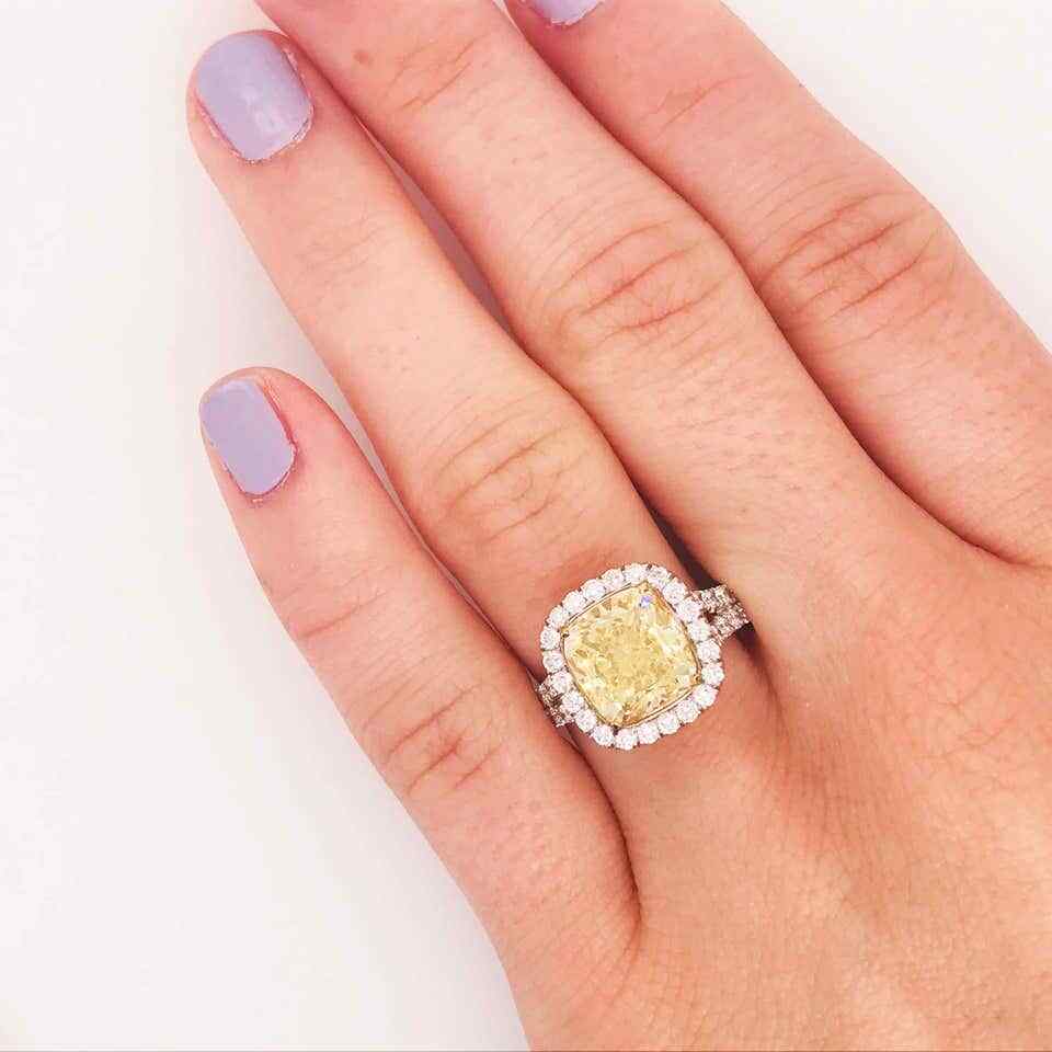 как выглядит 4.06CT Fancy Yellow Citrine Brilliant Cut Cubic Zirconia Halo Fashion Ring фото
