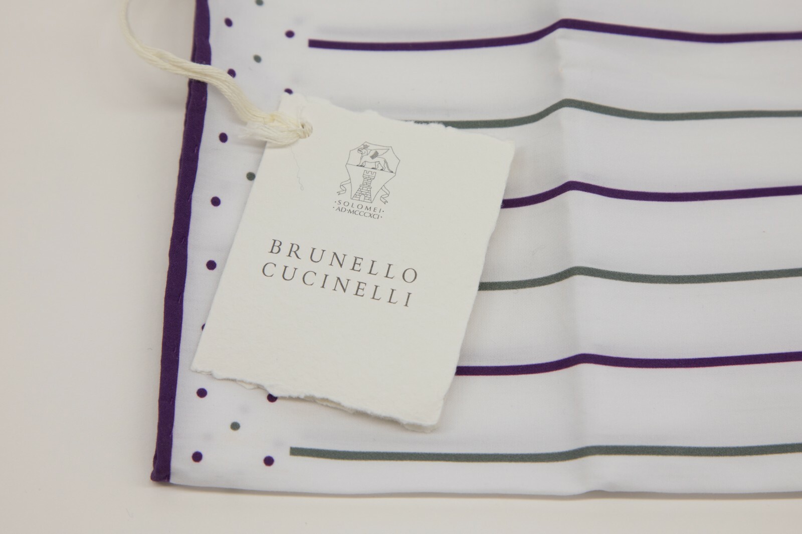 как выглядит NWT Brunello Cucinelli Mens 2-Tone Stripe Polka Dot Print Pocket Square A201 фото