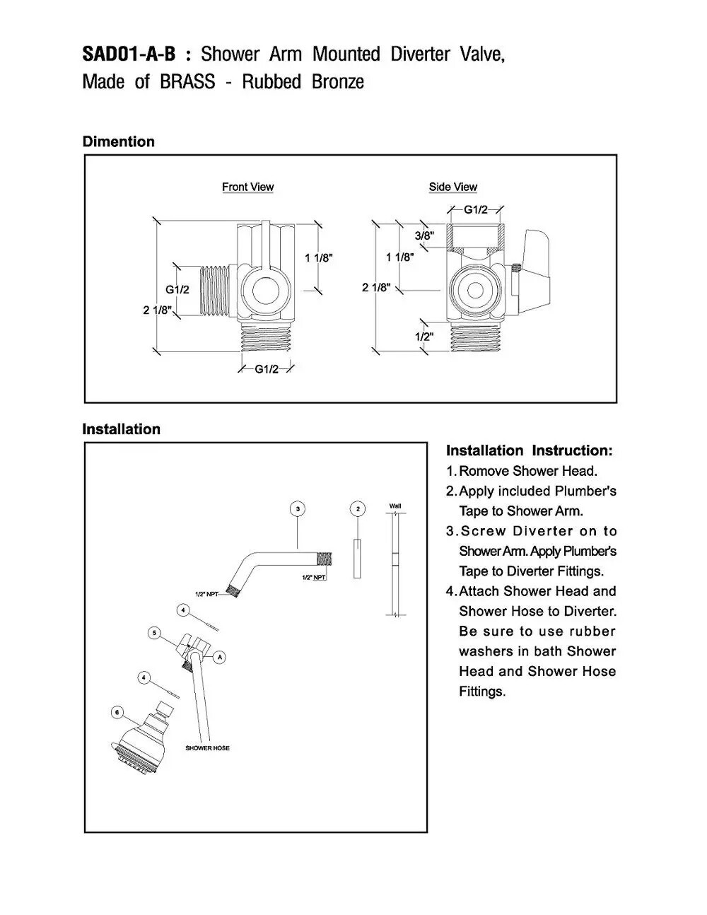 Solid Brass Shower Arm 2-Way Diverter Valve For Hand-shower