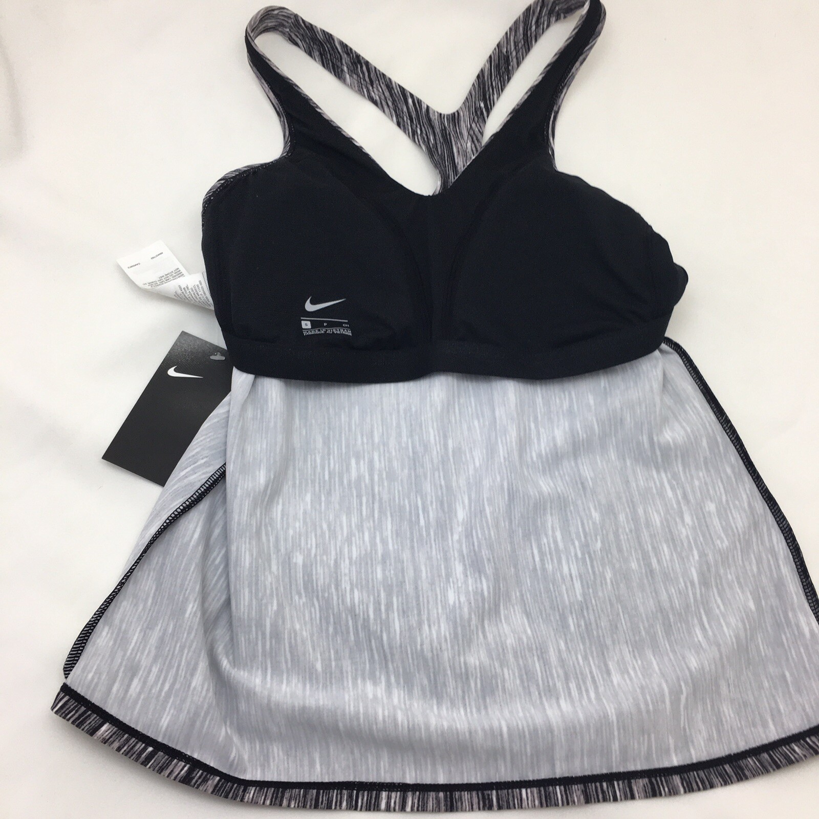 Nike Tankini Racerback Bathing Suit Top Black White Padded Bra NWT Swimwear Sz S