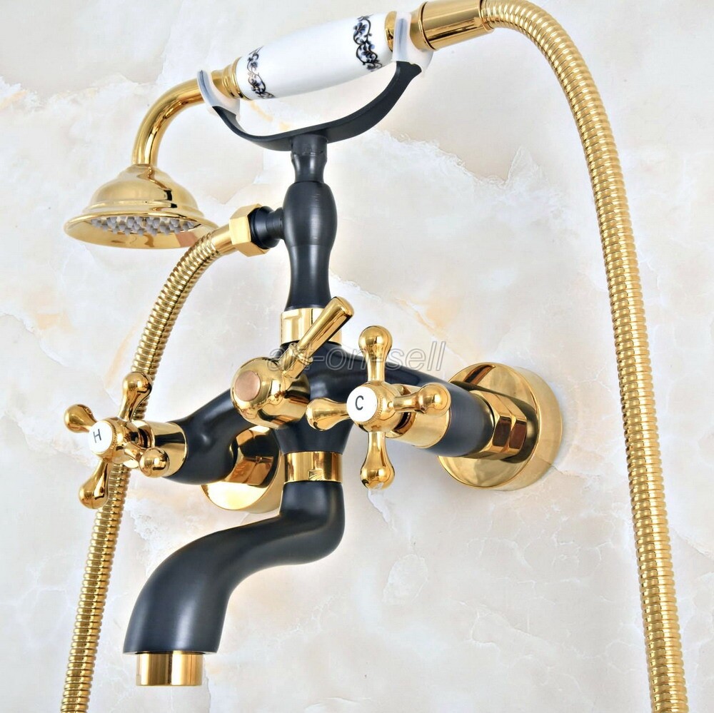 Black Gold Brass Wall Mount Bathroom Tub Clawfoot Faucet w/ HandShower ana407