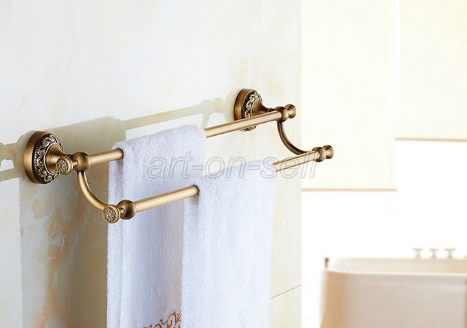как выглядит Antique Brass Double Towel Bar Rack Bathroom Wall Mounted Towel Holder aba483 фото