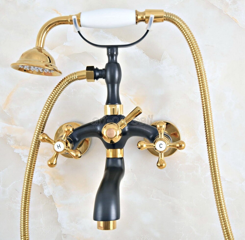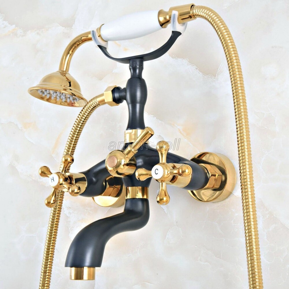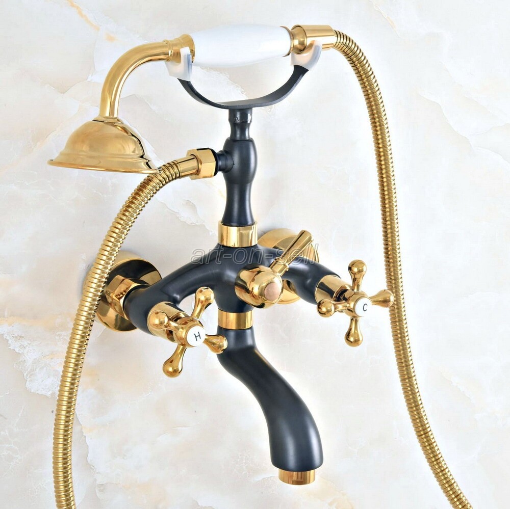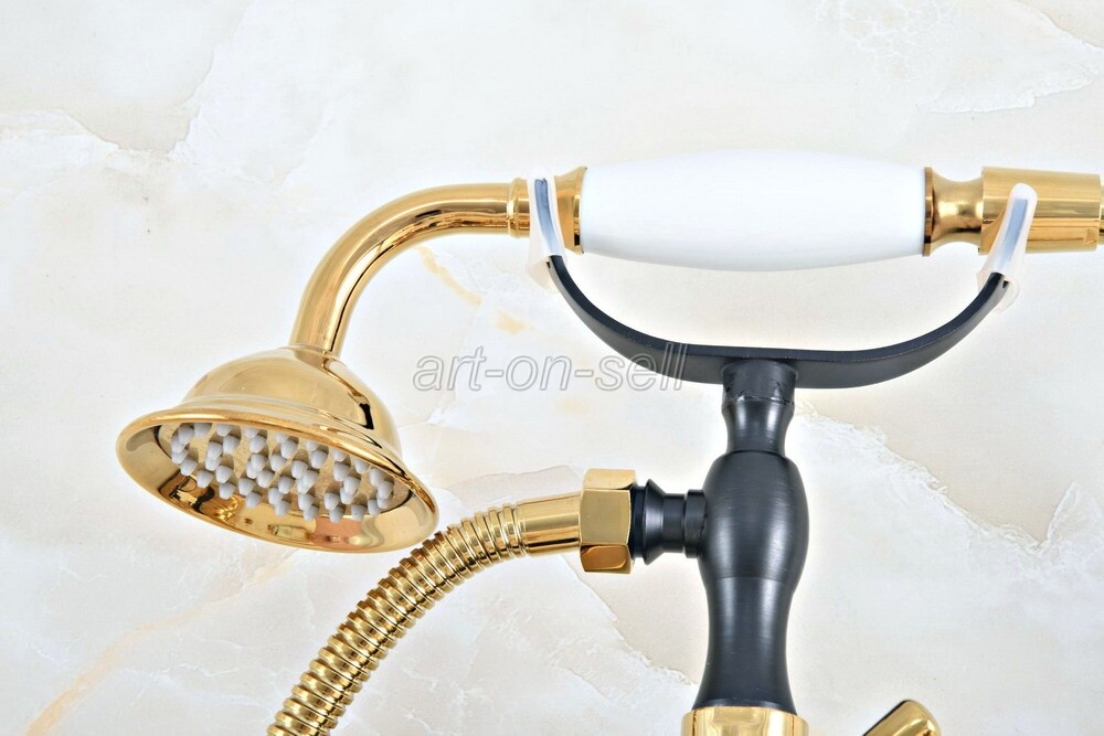Black Gold Brass Wall Mount Bathroom Clawfoot Bath Tub Faucet w/ Hand Shower