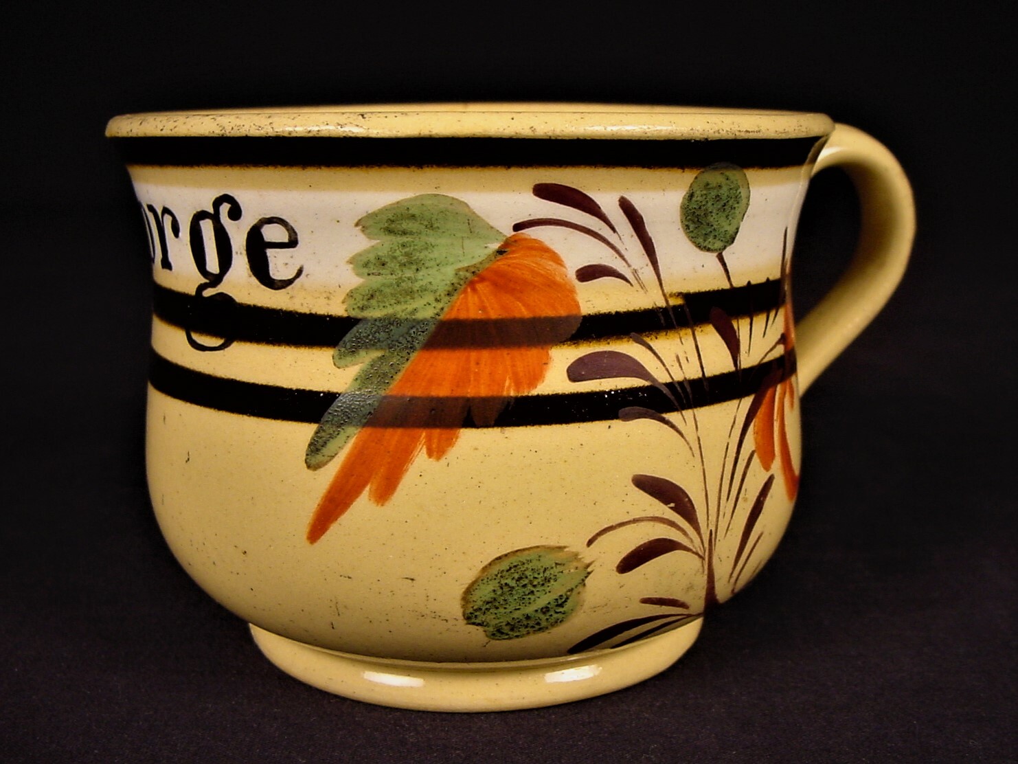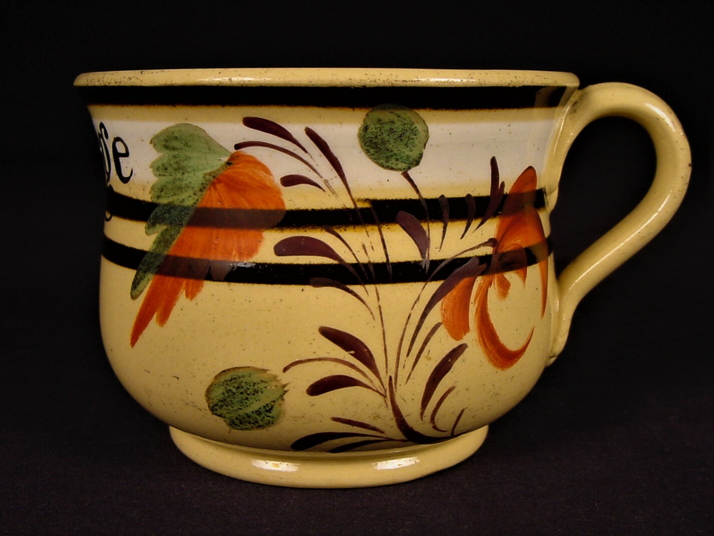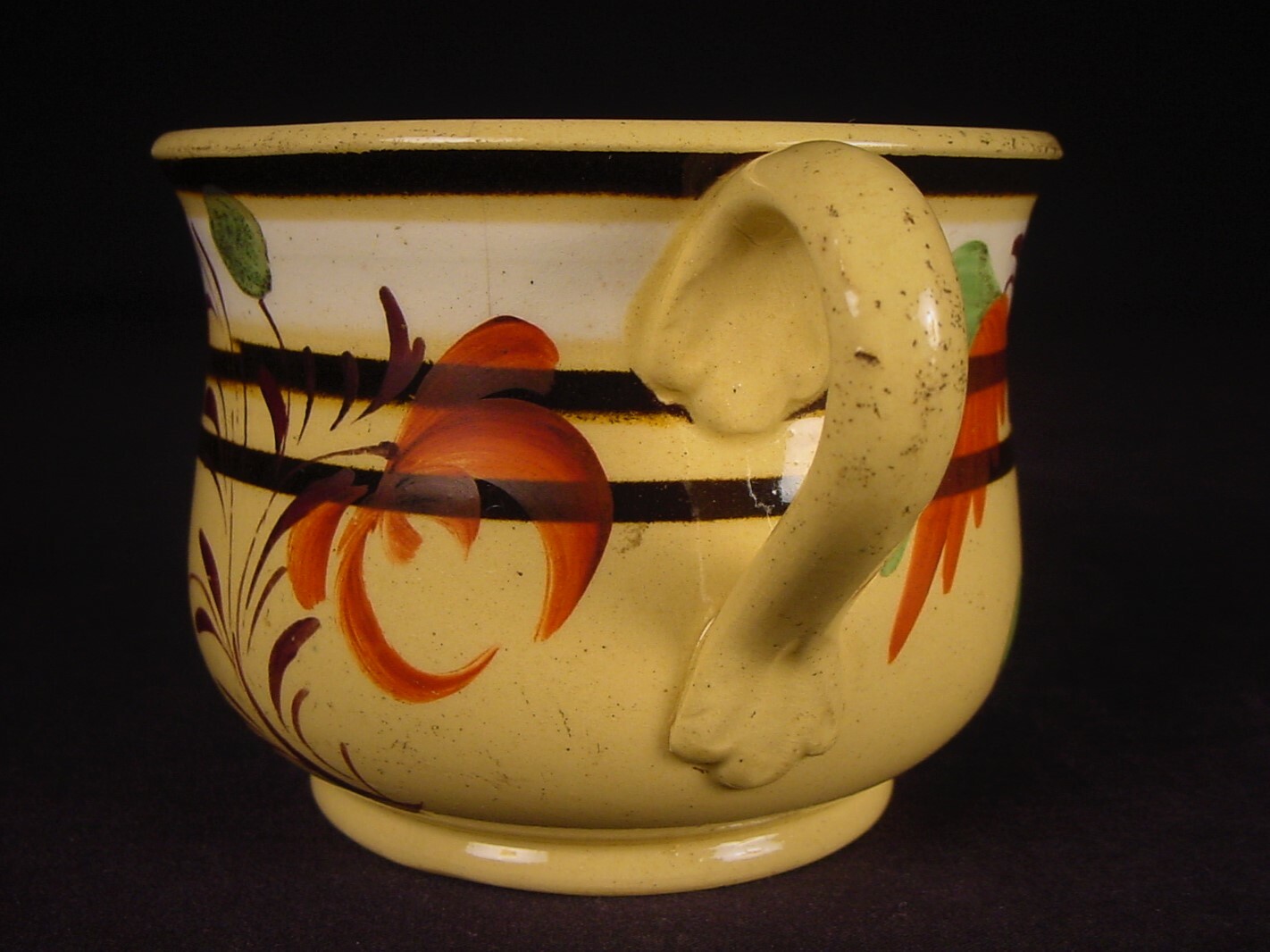 EXTREMELY RARE 1830s FLORAL POSSET CUP MOCHA MOCHAWARE YELLOW WARE MINT