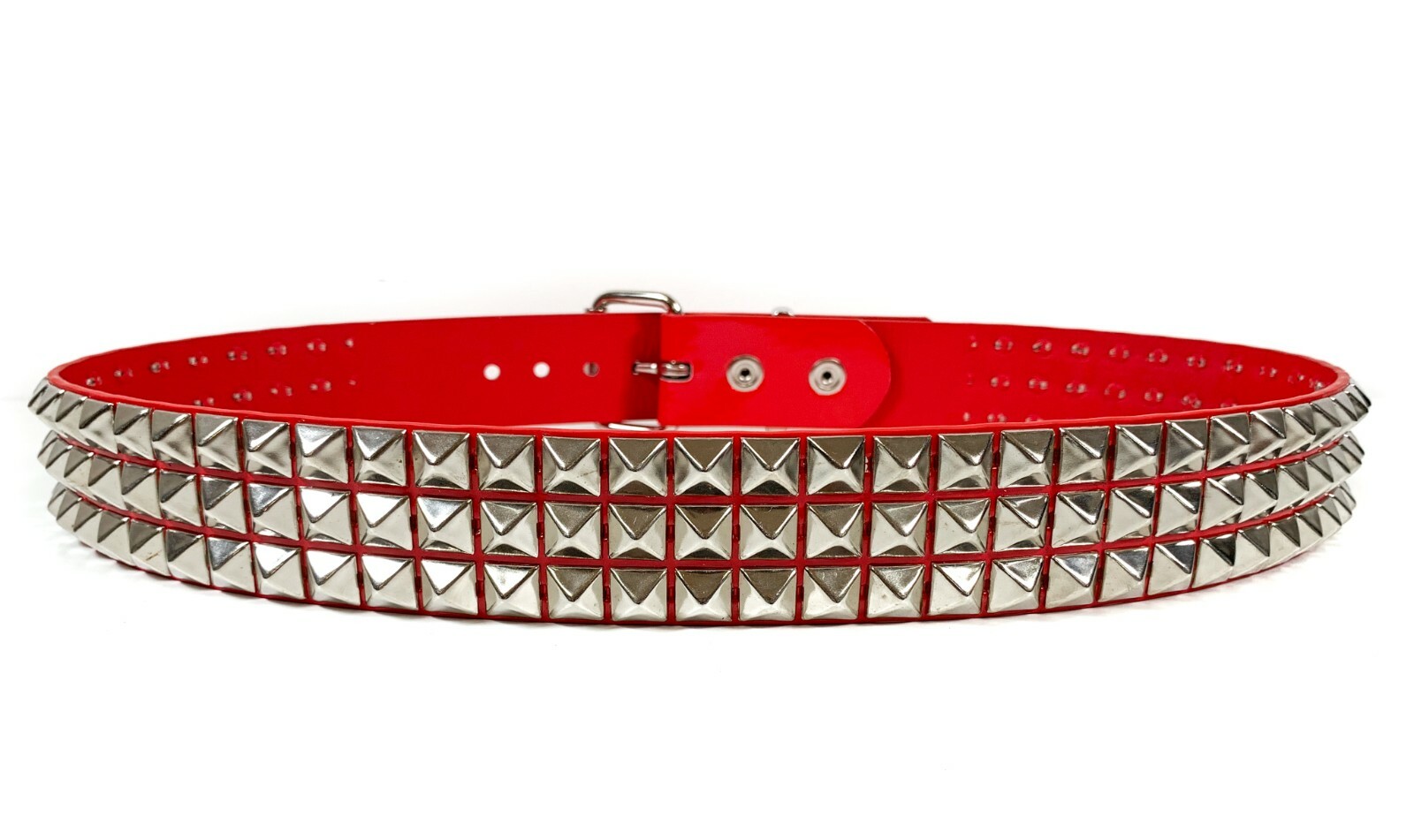 Red Patent Three Row Pyramid Stud Belt Genuine Punk Goth Metal Funk Plus