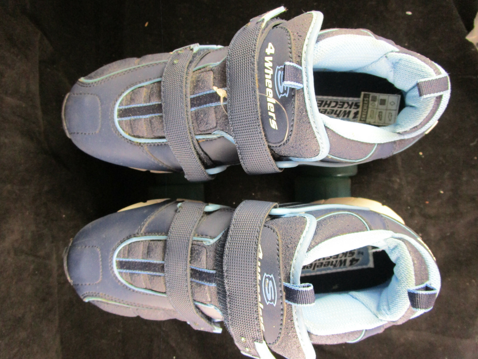 как выглядит VINTAGE Rollerskates SKECHERS Womens 4 Wheel Racers Navy/Carolina Blue Size 9.5 фото