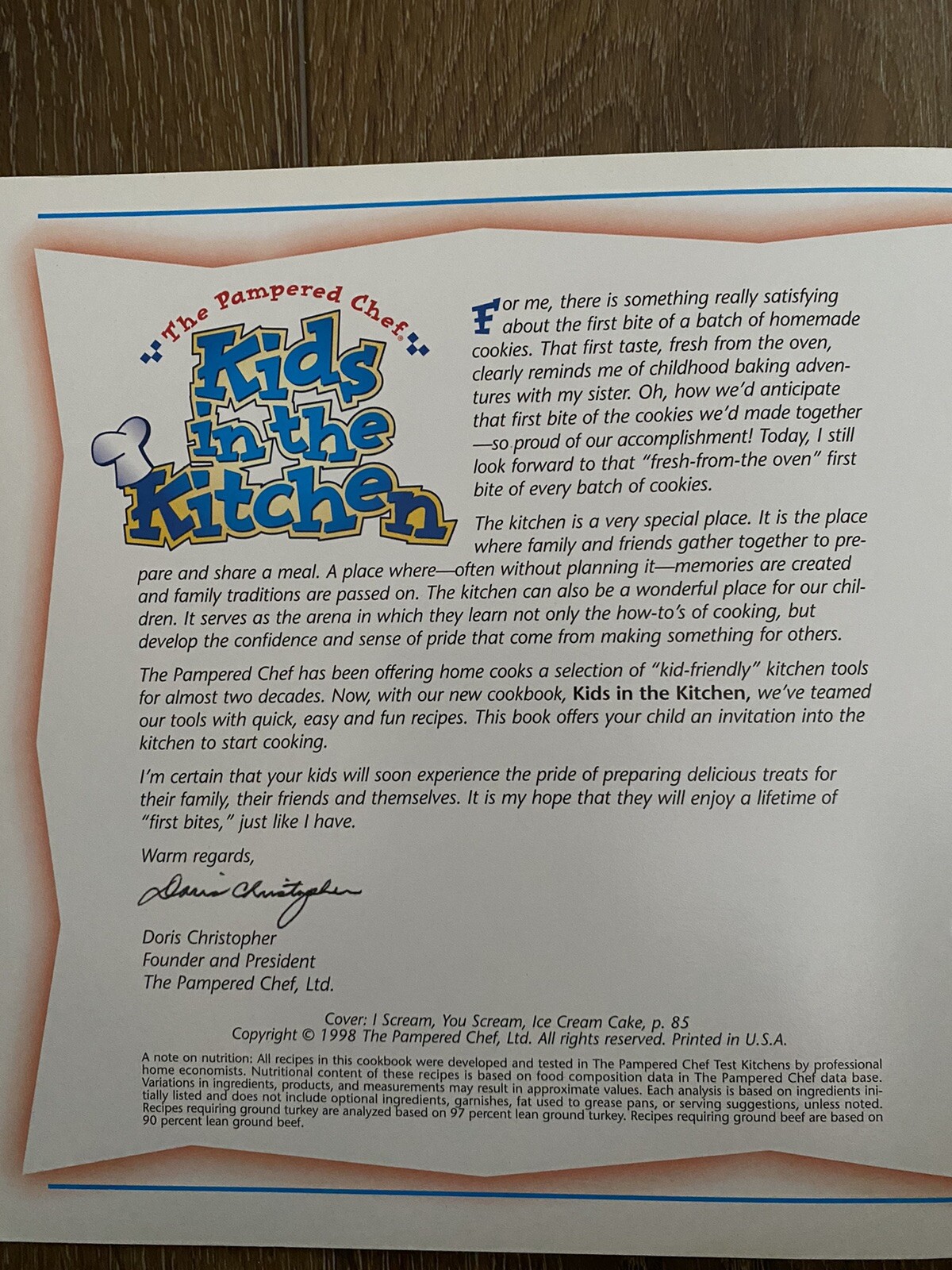 • Vintage 1998 The Pampered Chef Kids In The Kitchen Cookbook Recipes Cook Book