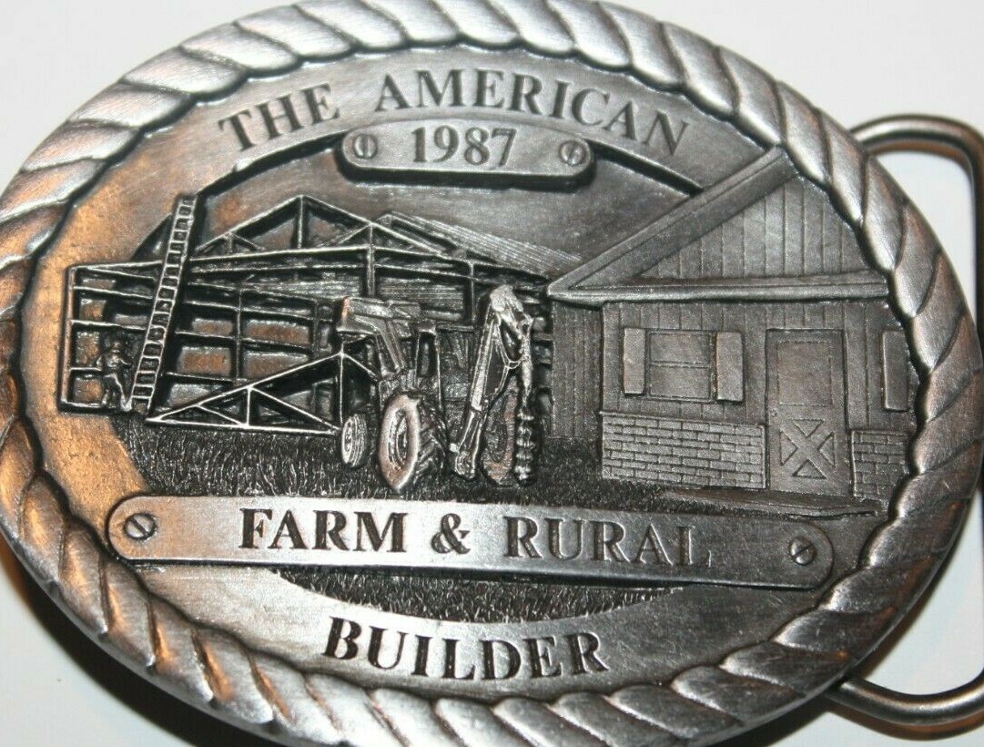 The American Farm Pewter Belt Buckle VINTAGE 1987 Rural Builder Limited Edition