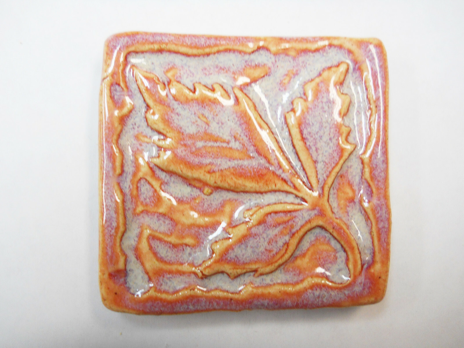 2 Ceramic Leaf Tiles, 6 pcs, Handmade Stoneware Coral Peach Mosaic Craft Tiles