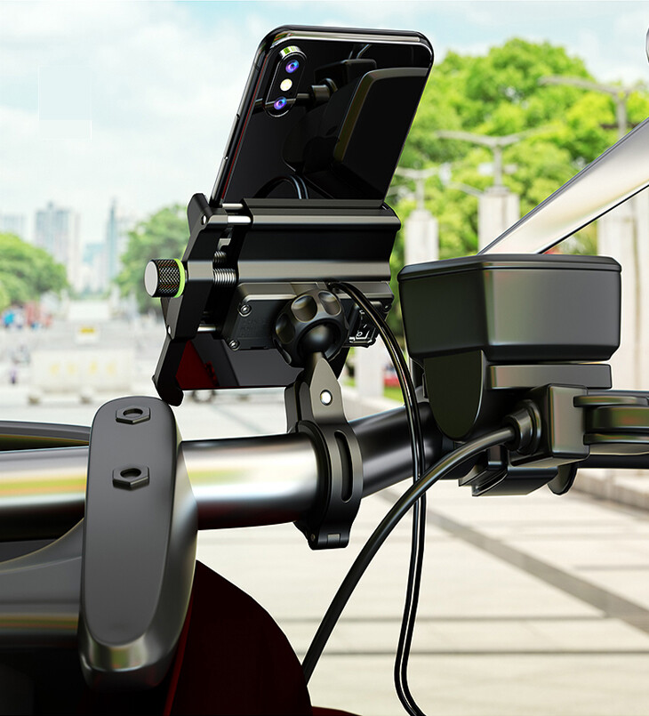Motorcycle Mirror Handlebar Holder Mount with USB Charger for Cell Phone GPS