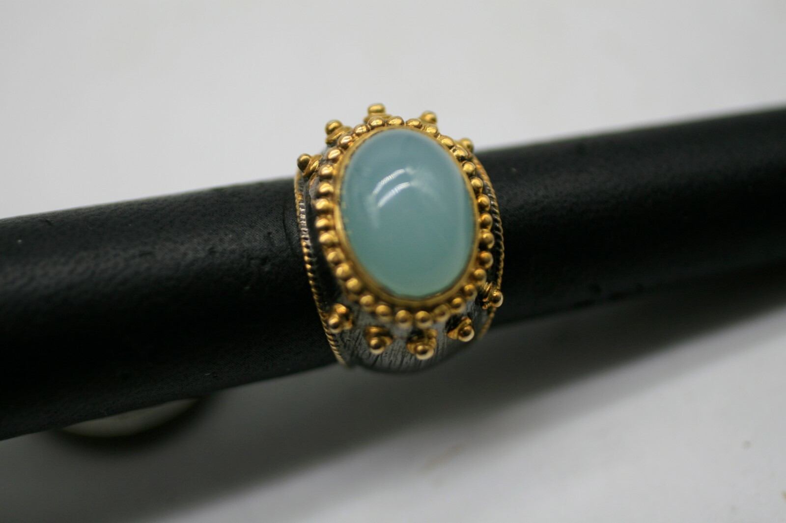 как выглядит 925 Sterling Silver BLACK RHODIUM Chalcedony Stone Ring Size 8 фото