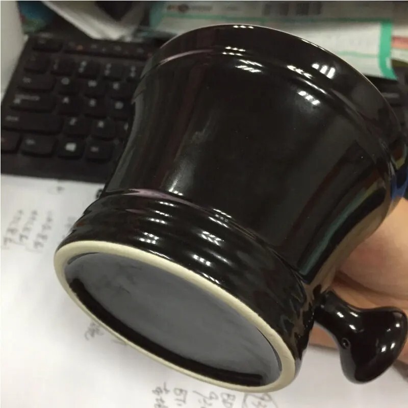 3PC Porcelain Ceramic Shaving Shave Soap Puck cake Mug Bowl cup Black Brush Set