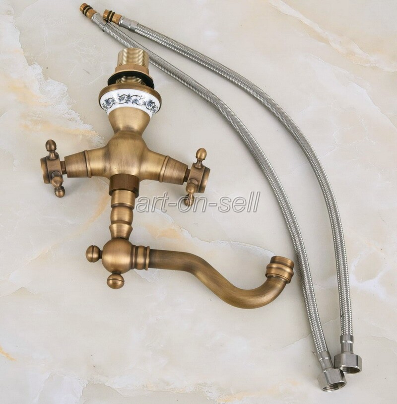 как выглядит Antique Brass Deck Mount Bathroom Sink Swivel Mixer Tap Vanity Basin Faucet фото