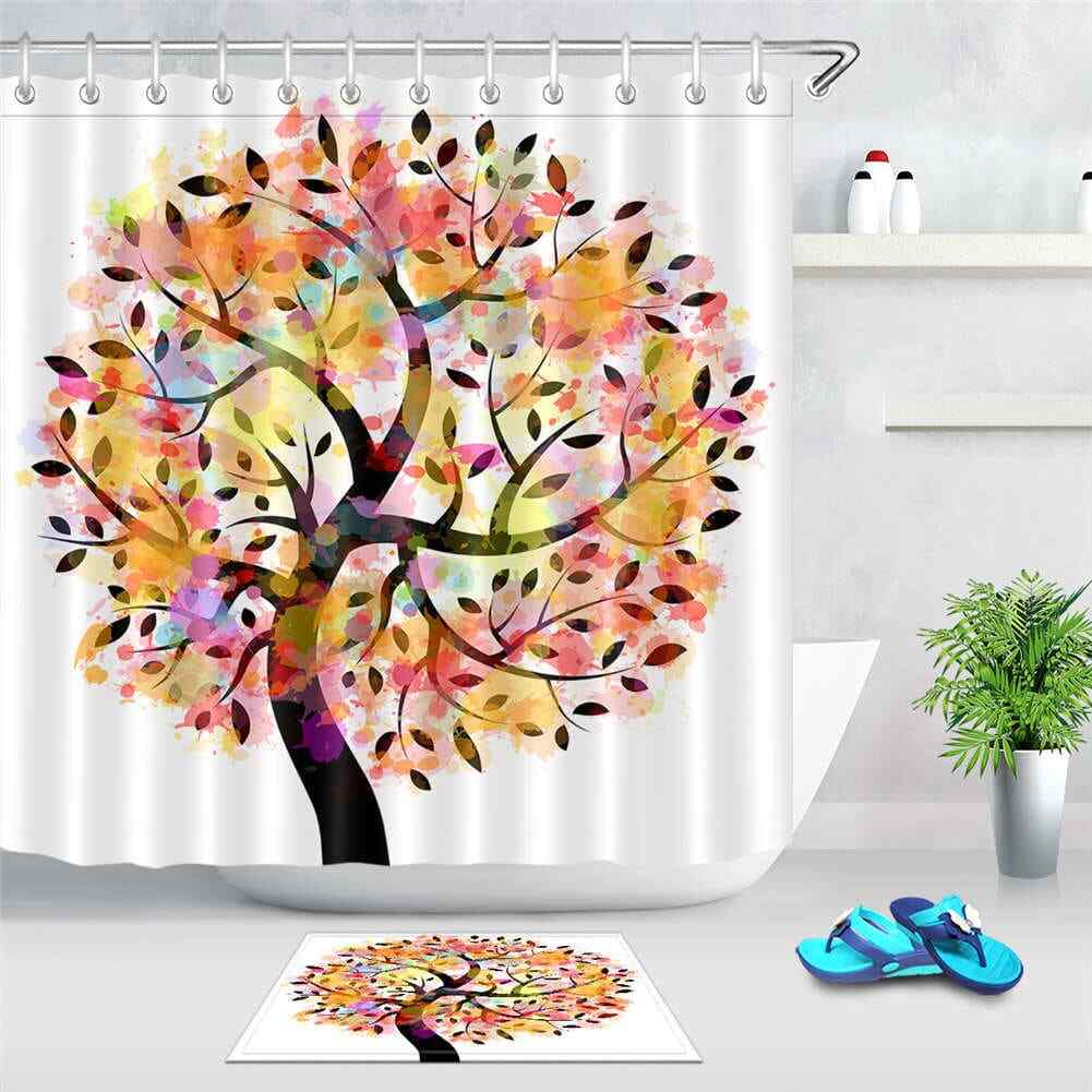 Flower Tree Waterproof Bathroom Polyester Shower Curtain Liner Water Resistant