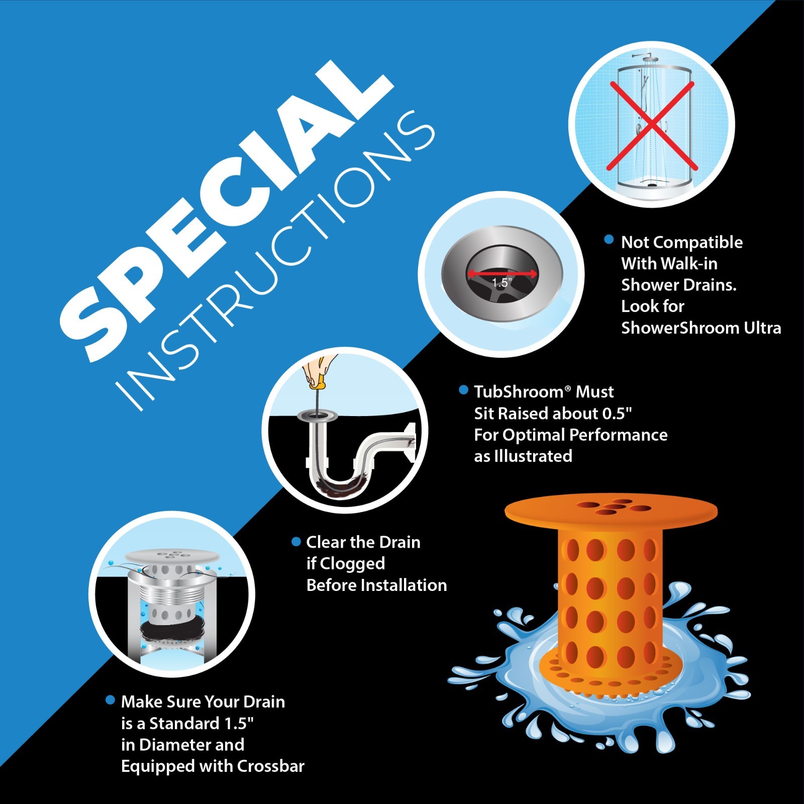 TubShroom Orange Revolutionary Drain Hair Catcher No More Clogs Free Shipping