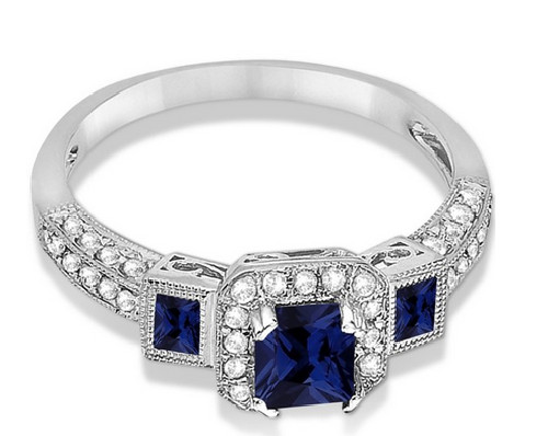 как выглядит 1.36CT Princess Cut Sapphire Round Cut Cubic Zirconia Womens Engagement Ring фото