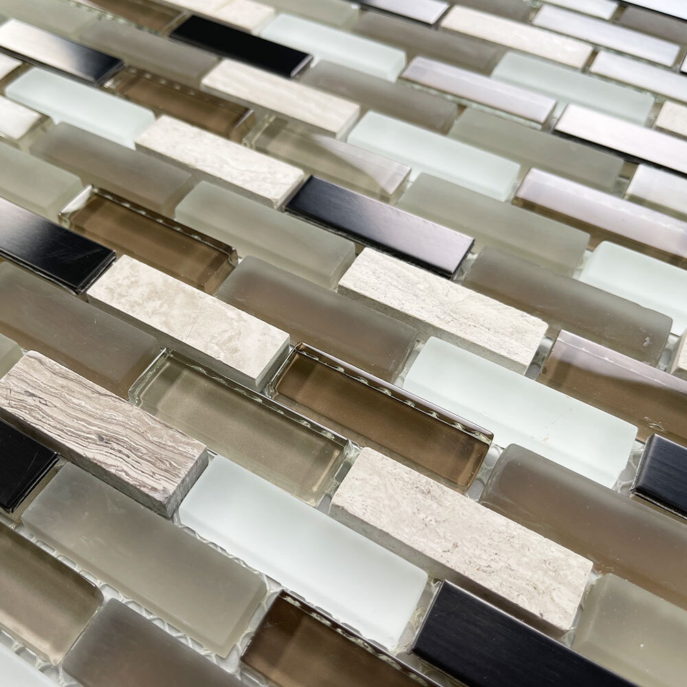 A62003 Glass Mosaic Tile Brown Grey Glass Stainless Steel Athens Gray Marble