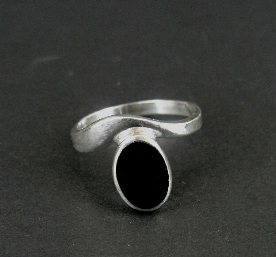 Ring Silver Black Onyx Stone Oval Shape Sterling 925 Size 7.5 RIng Band