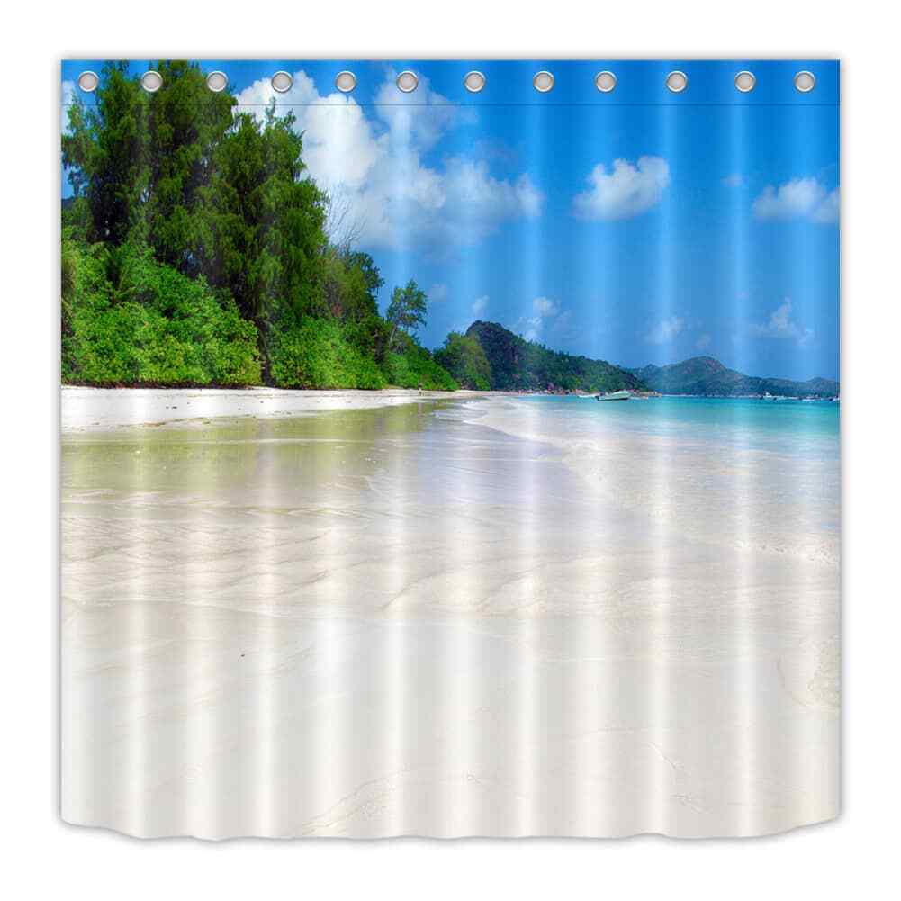 Natural Seaside Waterproof Bath Polyester Shower Curtain Liner Water Resistant