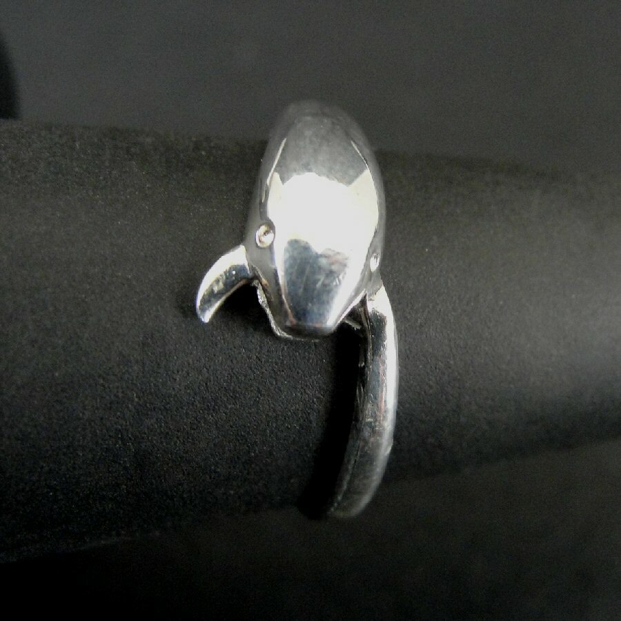 Ring Silver Band with Dolphin Fish Sterling 925 Size 7 Band Ring