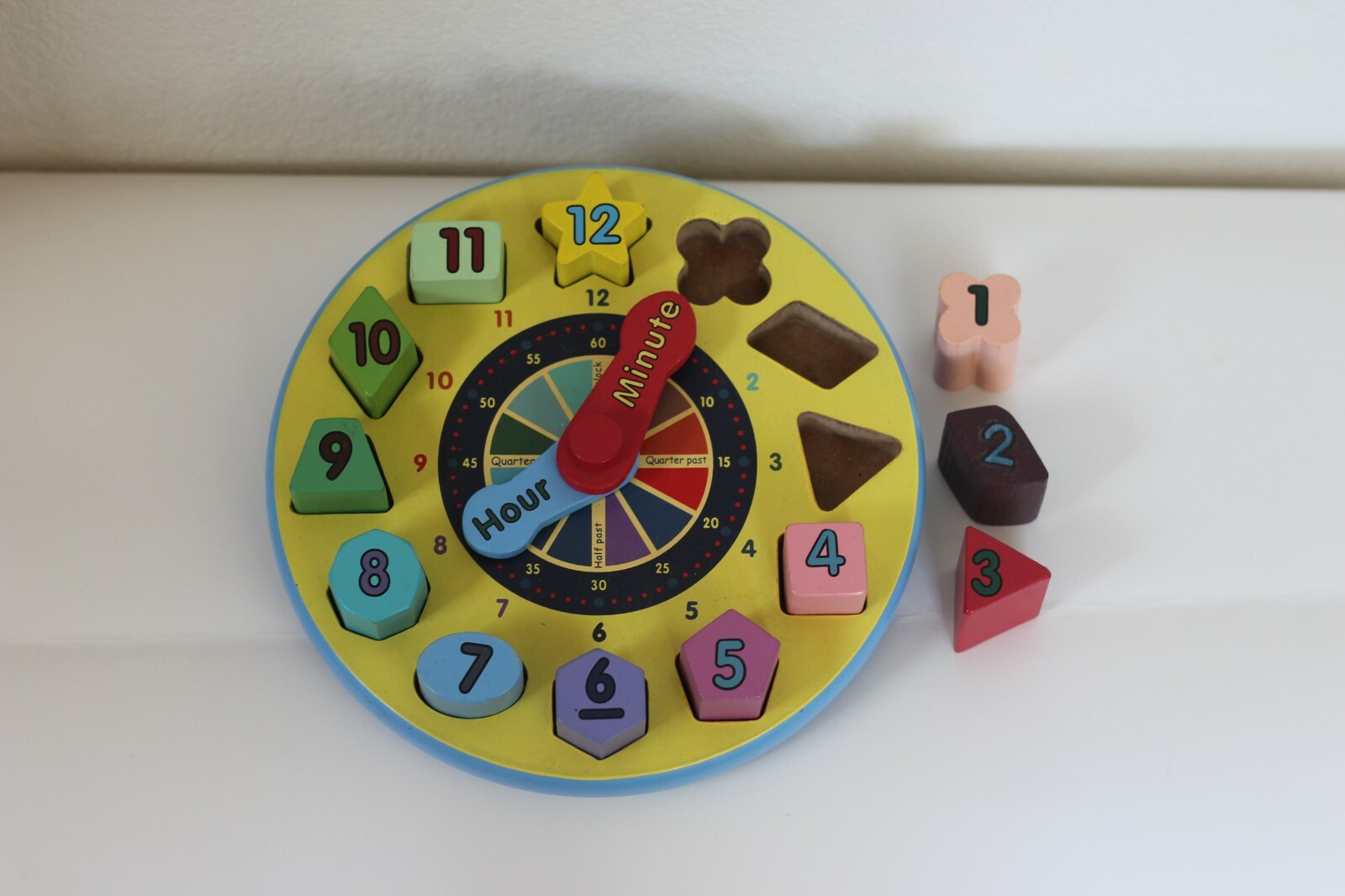 как выглядит EUC Melissa Doug Wooden multicolor shape sorting clock toy фото