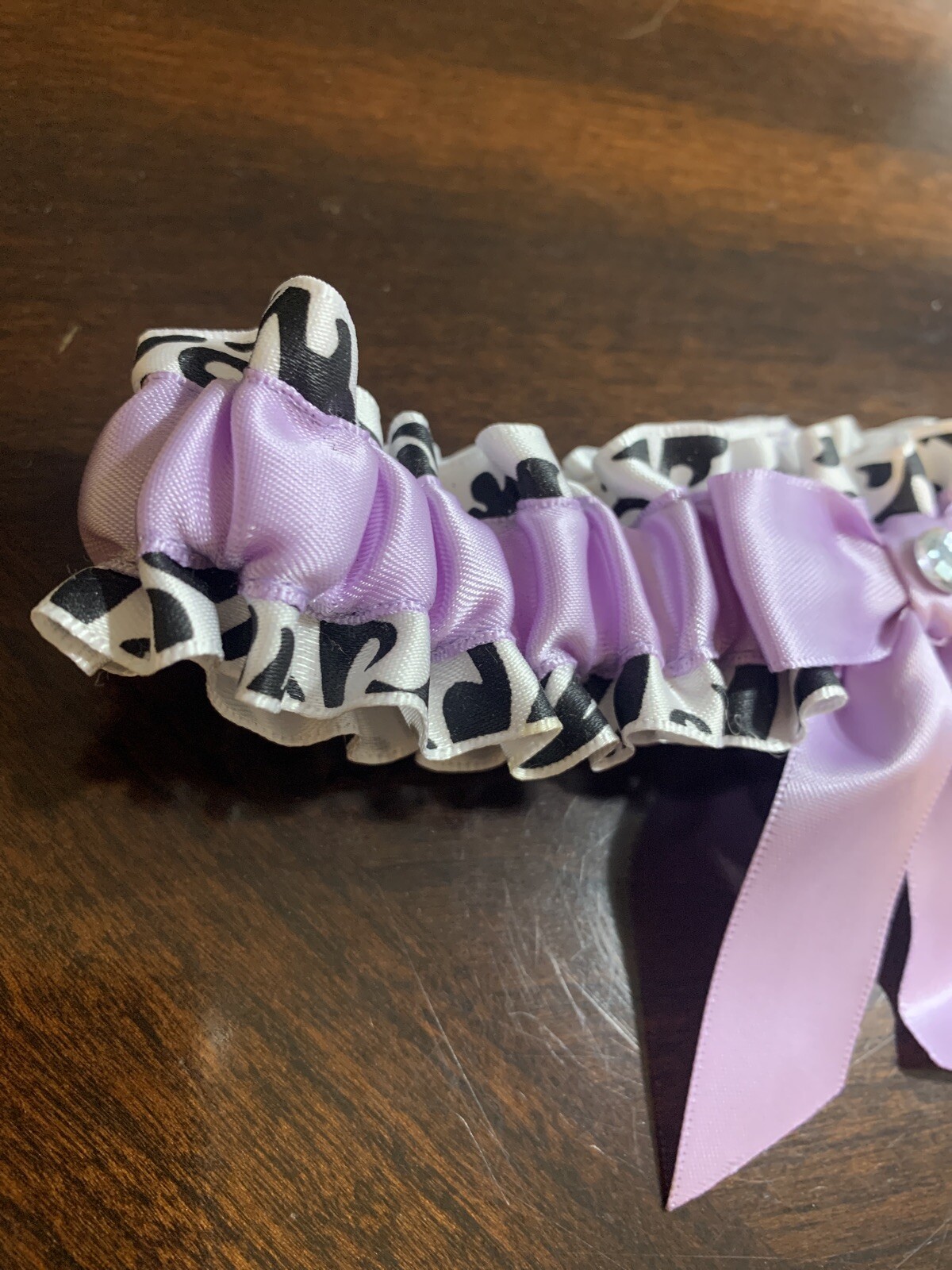 как выглядит Wedding Bridal Garter Black And White Damask With Lavender , Handmade New фото