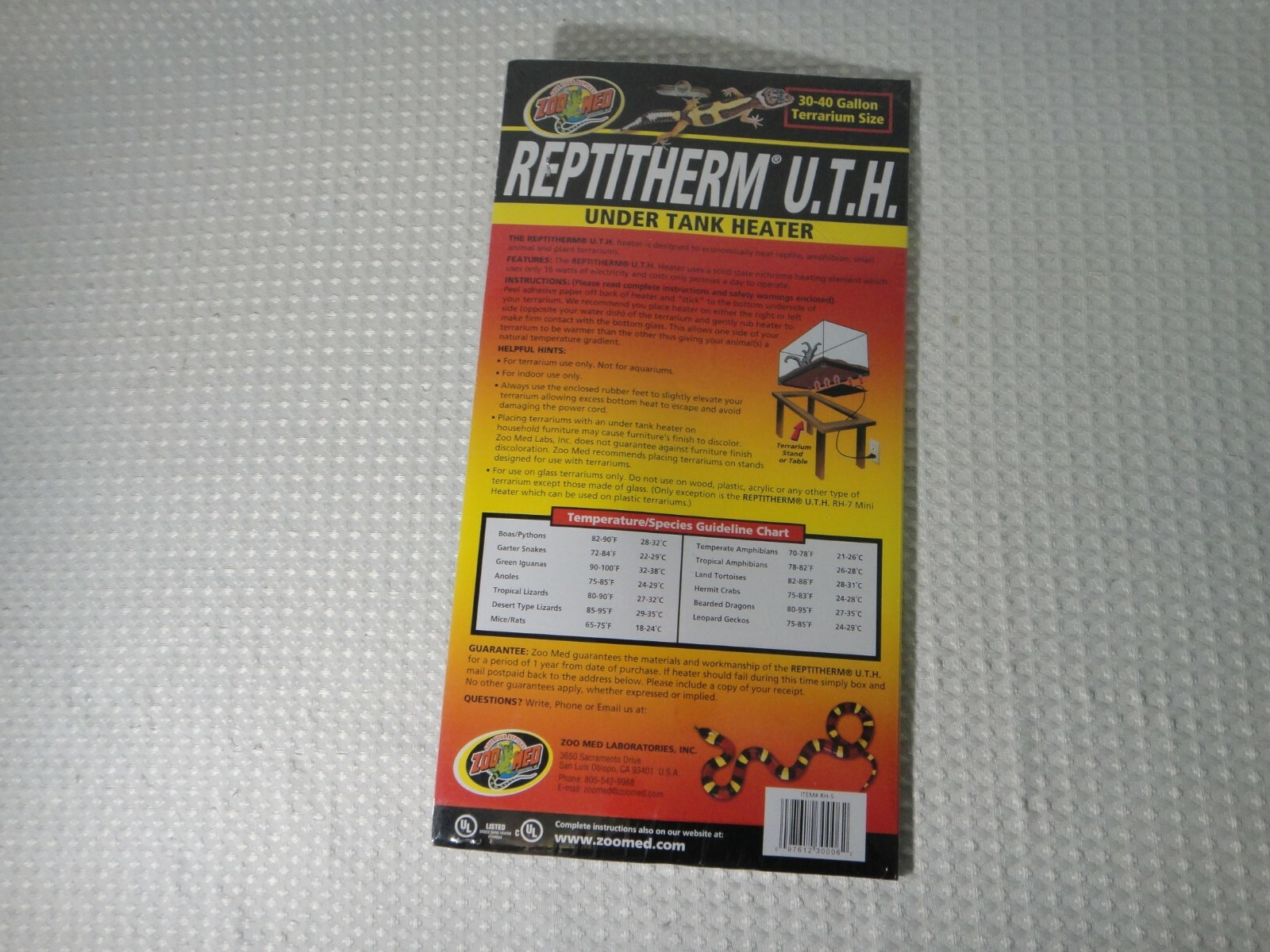Zoo Med Reptitherm Under Tank Heater 30-40 Gallon Terrarium Size New