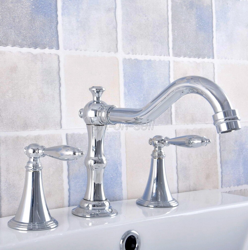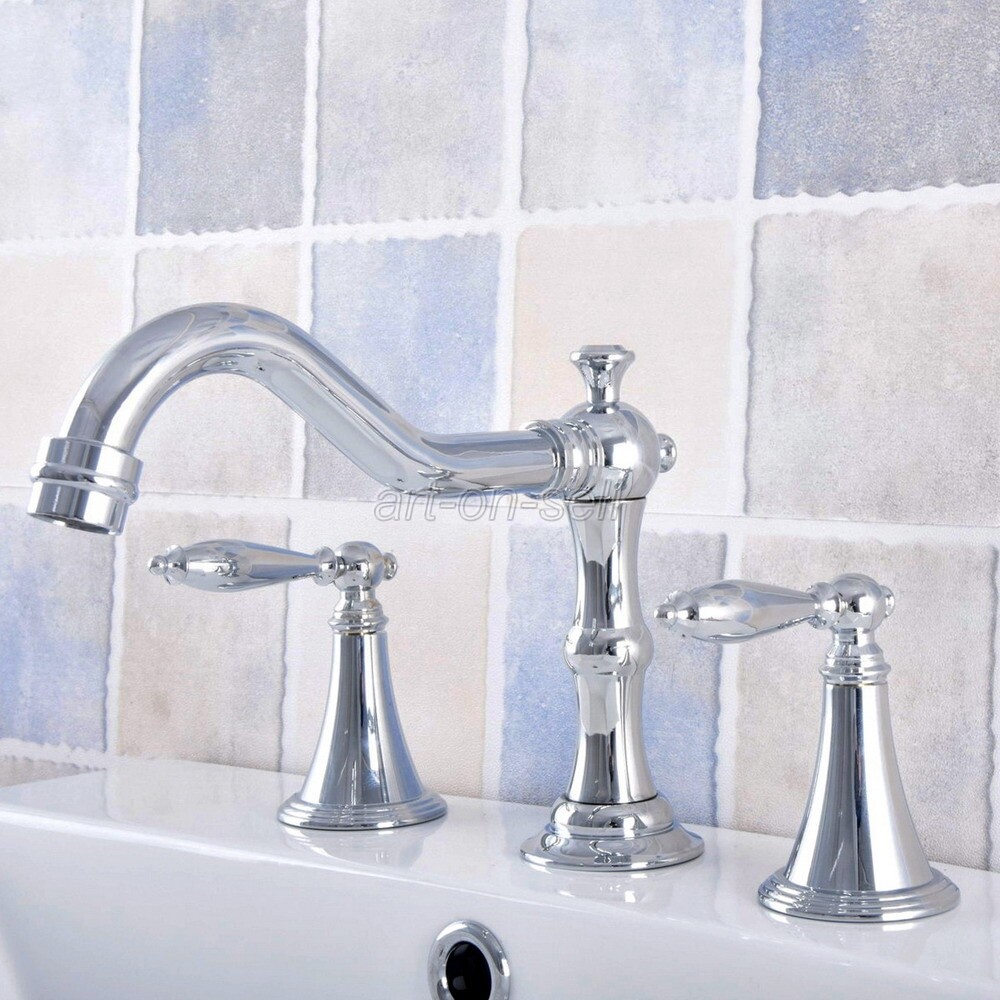Polished Chrome Brass Double Handle Widespread Bathroom Sink Faucet Water Tap