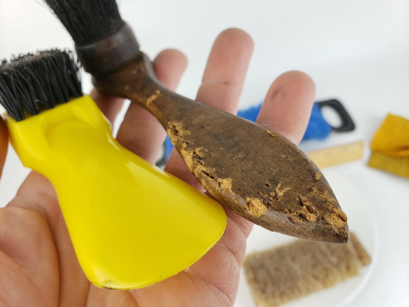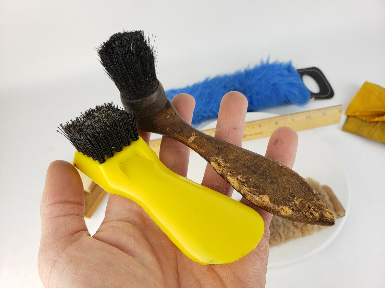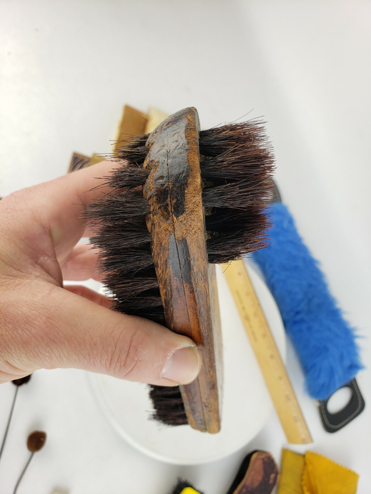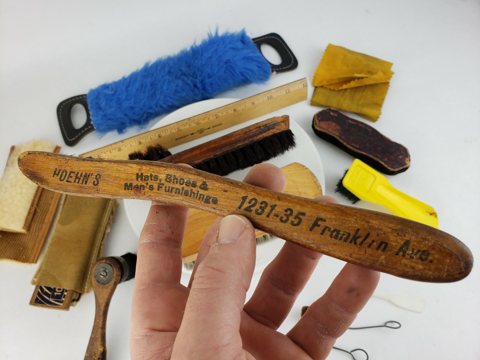 как выглядит Vintage Lot Soft Brushes Empire Hoehns Shoe Shine Suede Cleaning Wooden Small фото