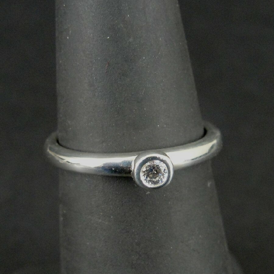 Ring Silver Cubic Zirconia Stone Surround Dainty Sterling 925 Size 5 Ring Band
