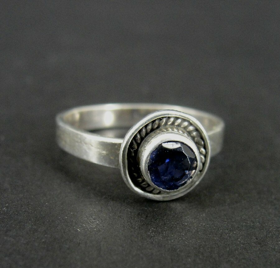 Ring Silver Purple Round Faceted Stone Sterling 925 Size 6 Ring Band