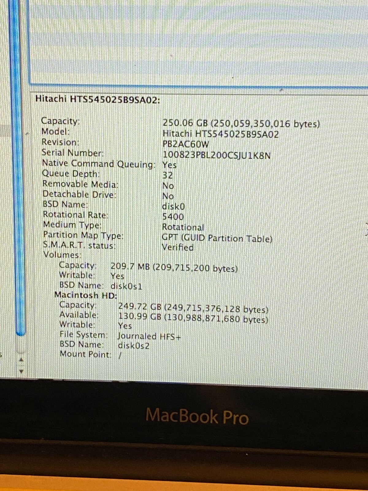 Hard Drive Capacity: 250 GB